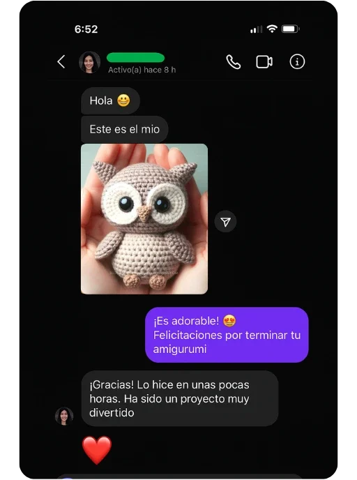 En menos de 24hs podés tener tu primer amigurumi terminado. La mayoría de alumnas lo logra en 1 tarde.